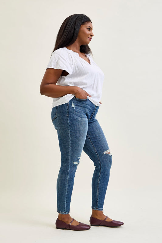 Freya Mid Rise Tummy Control Distressed Skinny - PLUS